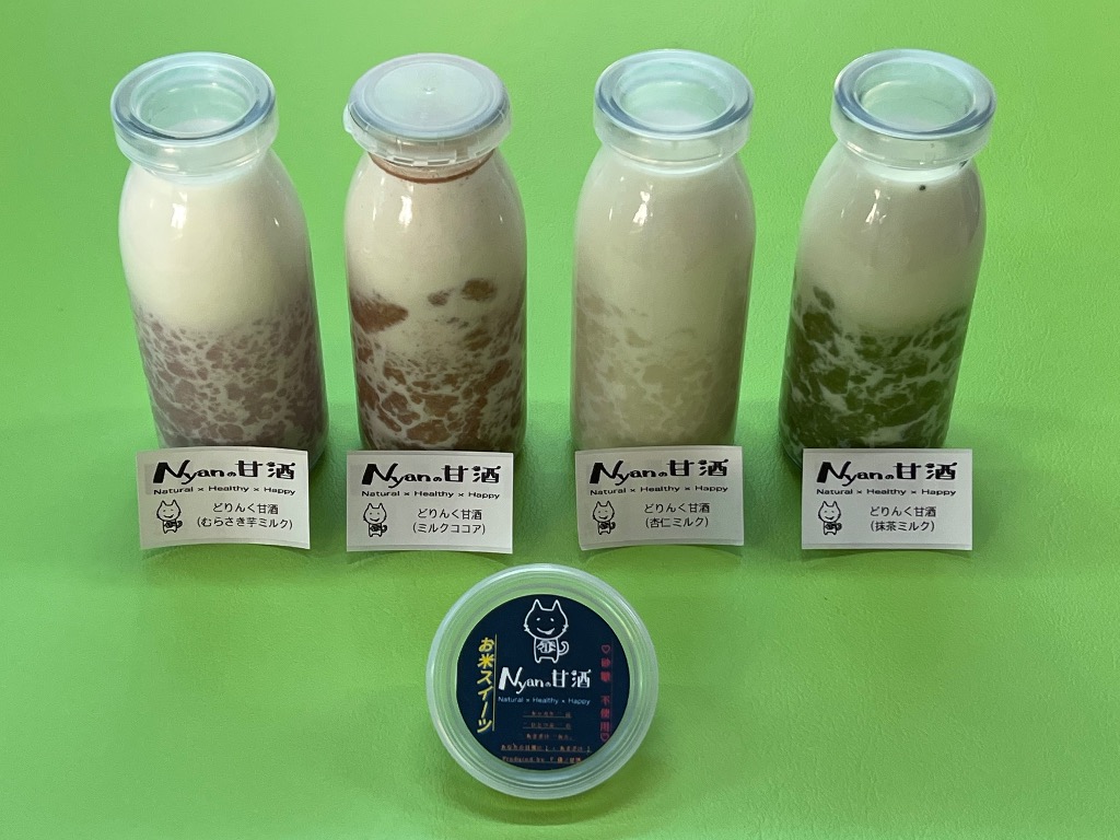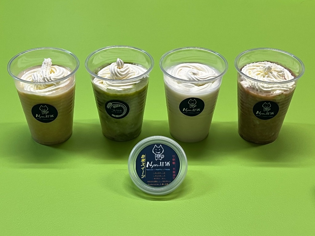 エリア初のお米スイーツ専門店♡『無農薬』の『お米』&『生こうじ』にこだわり、昔ながらの手づくり製法のオリジナル甘酒。『砂糖』・ 『添加物』不使用。『ノンアルコール』なので、お子様の「離乳食」から老若男女が味わえる栄誉満点な『日本の伝統食』。宅配は、お店から7km圏内・3,000円〜(税込)承り中。新メニューはInstagramをチェックしてね♡全国発送も好評承り中☆