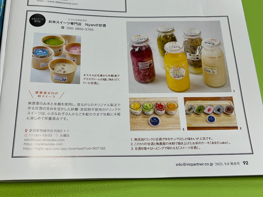 #岡崎 #スイーツ #グルテンフリー #無添加 #オーガニック #美肌 #腸活 #デトックス #免疫力アップ #お米スイーツ #甘酒 #甘酒スイーツ #岡崎 #健康スイーツ #美容スイーツ #離乳食 #砂糖不使用 #岡崎スイーツ #Nyanの甘酒 #にゃんの甘酒 #生糀 #仕事を楽しむためのWebマガジンBプラス #畑山隆則 #ミスターパートナー10月号# anan #chaoo #大人の名古屋に掲載中 #甘酒自販機 #おかふる #アトピー治療 #腸活 #ケーキ